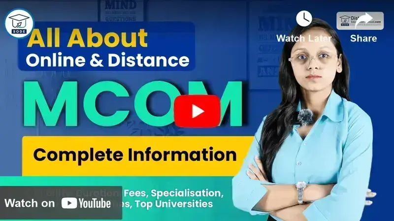 MCOM Distance Education from UGC-DEB Approved Top Distance Education Universities/Colleges in India for the July 2025 academic session. Explore the convenience of a distance MCom degree. By enrolling in the MCom course, you can begin your distance education MCom journey today.